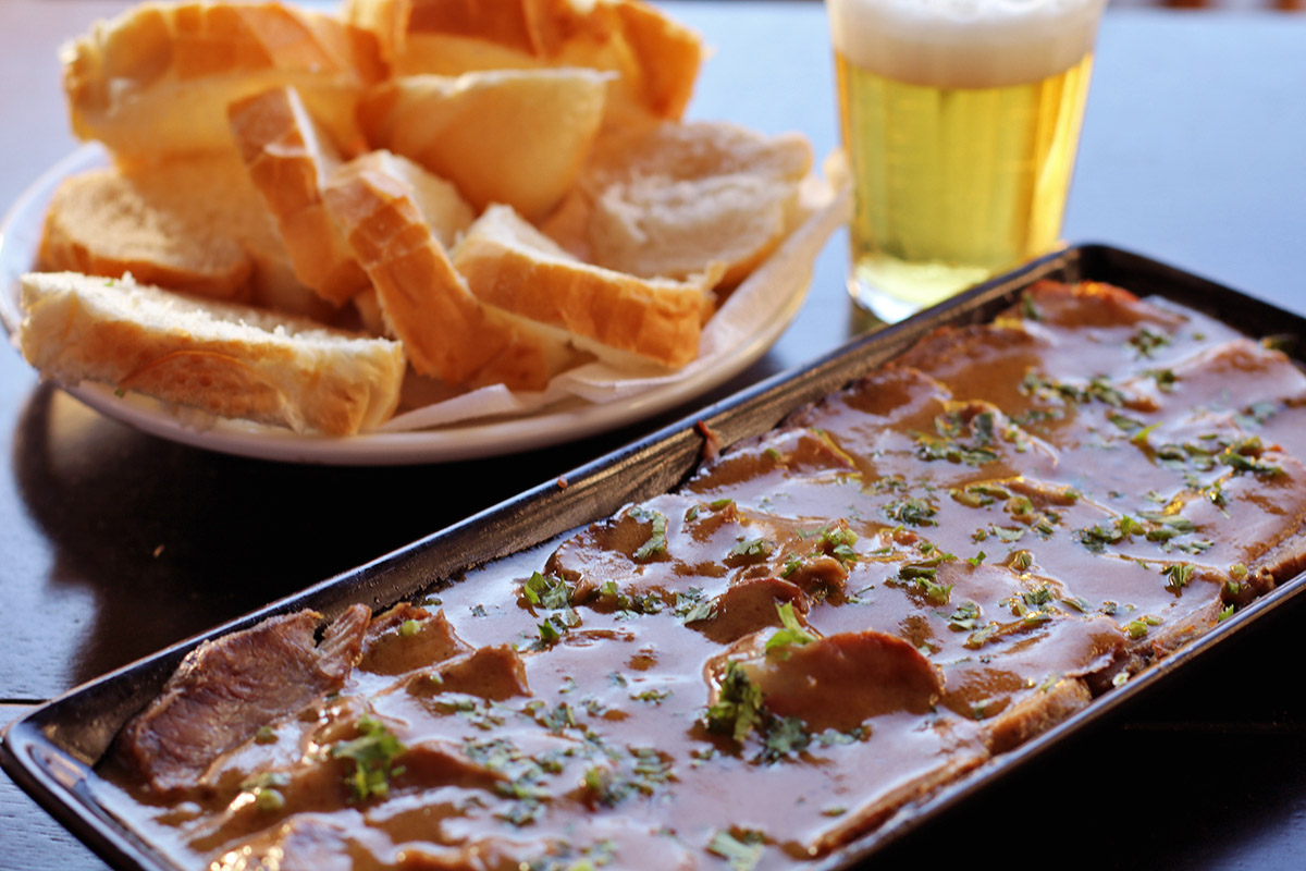 Leitoa a passarinho, coxinha de pernil, croquete e pratos veganos (como ragu de legumes, bolinho de trigo e saladas), ampliam a diversidade gastronômica da casa. E não para por aí, já que joelho de porco, porpetas, costelinha na cerveja e bochecha suína laminada (R$ 28) são alguns dos carros-chefes. Muito bem temperados e servidos, assim como o dadinho de milho verde, recheado com costela desfiada (R$ 28) que nós provamos e aprovamos. E fica fácil achar essa pérola no centro, porque uma Kombi, estacionada bem em frente, serve de palco para apresentações musicais do bar. Você vai dar sorte mesmo se for atendido pelo Richard, um garçom extremamente atencioso que nos deu ótimas sugestões! Segundo ele, o bar estará sempre com novidades, seja nas porções ou nas cervejas artesanais, que estão sempre mundando.