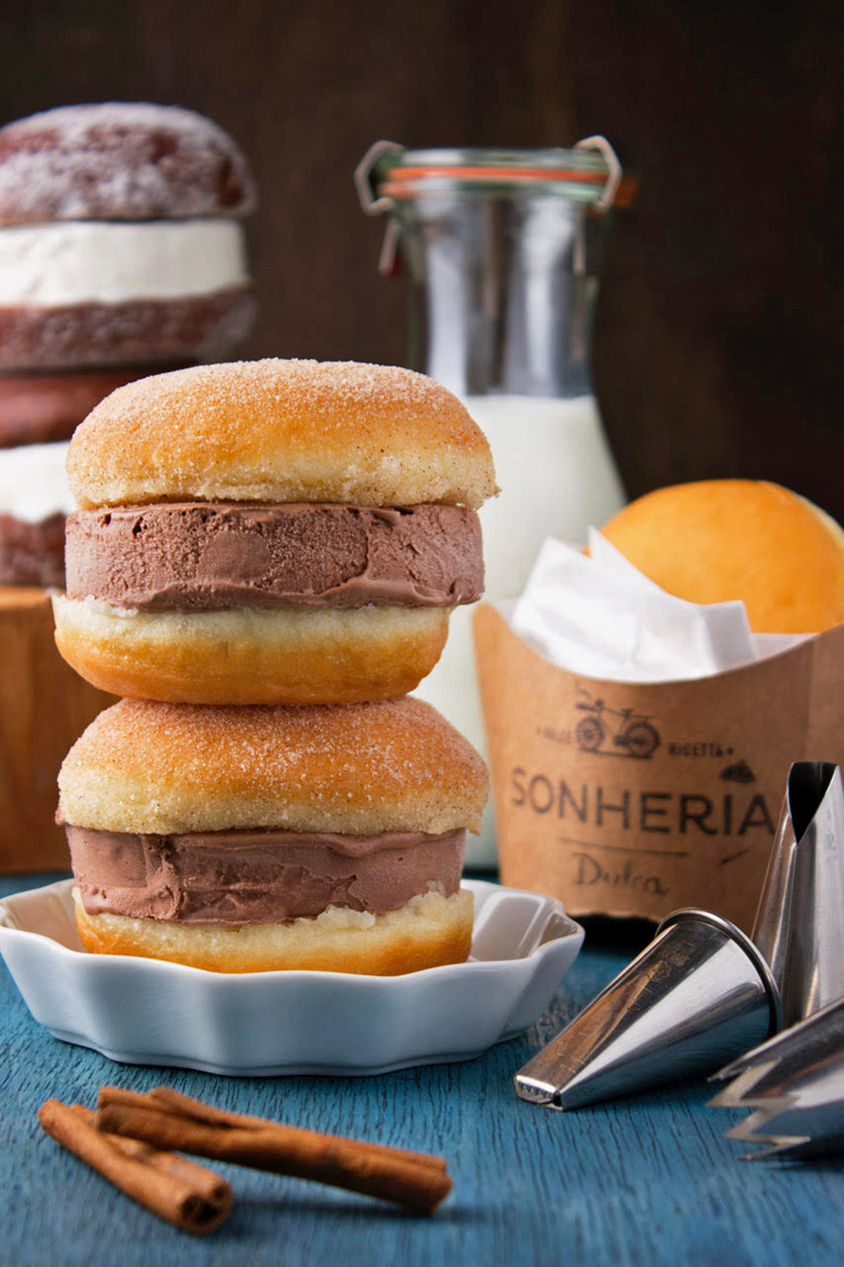 Sorvetes diferenciados com diversos sabores, destacando o Trifreddo de doce de leite.